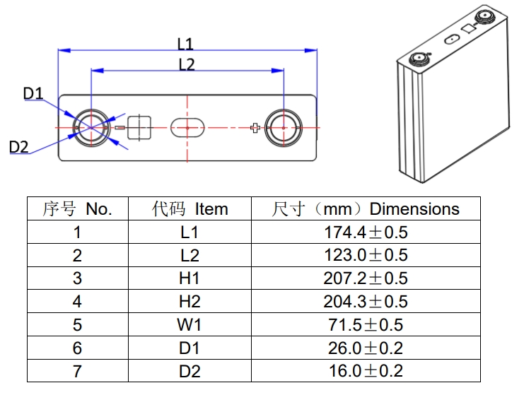 This file defines the performance requirements, test methods, inspection rules, signs, packing, transportation, storage and safety requirements of rechargeable Lithium-ion battery cell - EC-AU280-NAH3L0, produced by the enterprise.